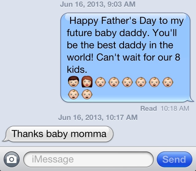 And then, of course, Happy Father's Day to my lover boy. Mostly because I like to send him nice texts but also stress him out at the same time.